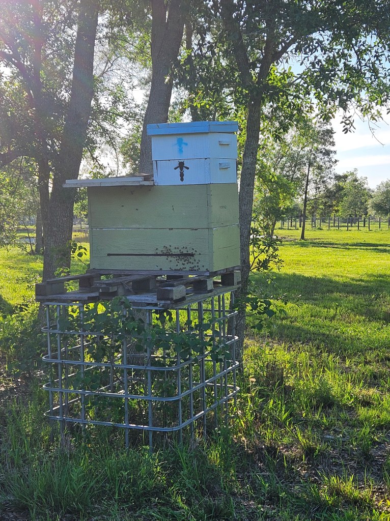 The top 2 white boxes are honey boxes. The green box below is a modified Lazutin beehive. I will discuss different boxes later.